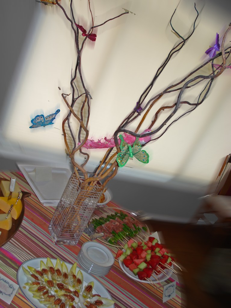 A friend of mine is getting married, so in her honor our mutual friend and I threw a bridal shower for her. A first for me, I’ve never even been to a bridal shower, I immediately started brainstorming ideas for how I wanted the party to look. I knew I wanted it to be pretty, festive, relaxed, and fun. Searching sites like marthastewart.com to find my inspiration, I came across a lot of good ideas like Chinese lanterns with butterflies pasted on, a Gossip Girl inspired bridal shower that had a lot of good elements to steal, and others that seemed too cheesy or theme-y to me. I came across the first picture which combined with the butterflies became the inspiration for the “Whimsical Garden Party”.