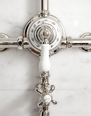 These are a few of my favorite things: White, Silver, french, and hints’ o whimsy. Check out the tile on the floor and the bathtub! Someday….