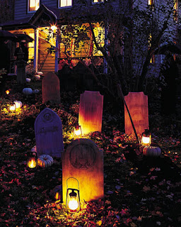 Making your own tombstones are more cost effective and unique from the ones you buy at Walgreens. Make a graveyard with some tombstones and lights. But when it comes to a graveyard, remember to keep it simple. If you start cluttering up your lawn with bones, body parts, and cobwebs it can look junky.